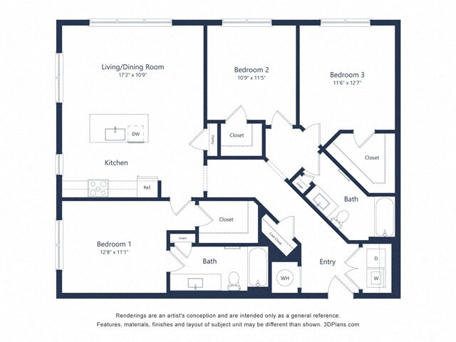 Lure - Floorplan 1 Floor plans are artist's rendering. All dimensions are approximate. Actual product and specifications may vary in dimension or detail. Not all features are available in every rental home. Prices and availability are subject to change. Base rent is based on monthly frequency. Additional fees may apply, such as but not limited to package delivery, trash, water, amenities, etc. Deposits vary. Please see a representative for details.
