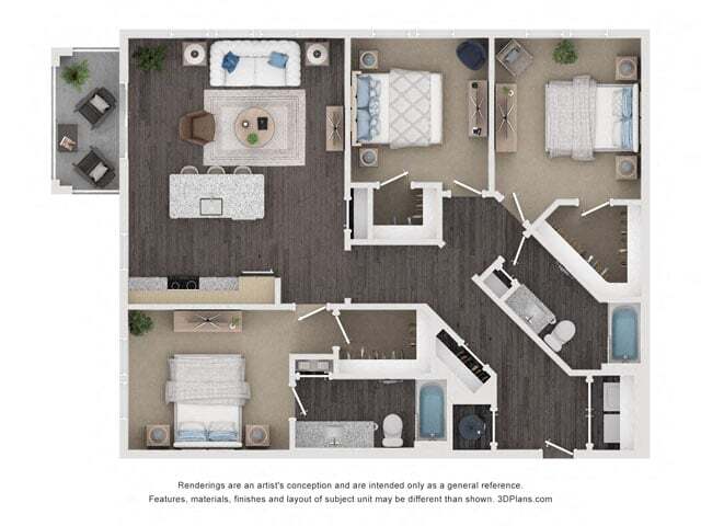 Studio to 3 Bedroom Apartments at Alta Town Center currently range from $1,259 to $1,979