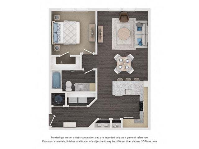 Apartment Model: Price$1,259Studio, 1 Bath, 634 sq ftAvailable NowFloor plans are artist's rendering. All dimensions are approximate. Actual product and specifications may vary in dimension or detail. Not all features are available in every rental home. Prices and availability are subject to change. Base rent is based on monthly frequency. Additional fees may apply, such as but not limited to package delivery, trash, water, amenities, etc. Deposits vary. Please see a representative for details.