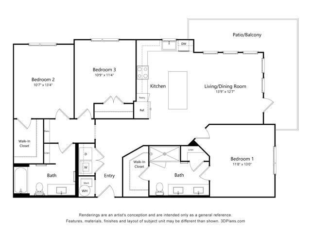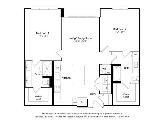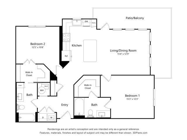 Studio, 1 Bath, 637 sq ftAvailable NowModel Gallery
