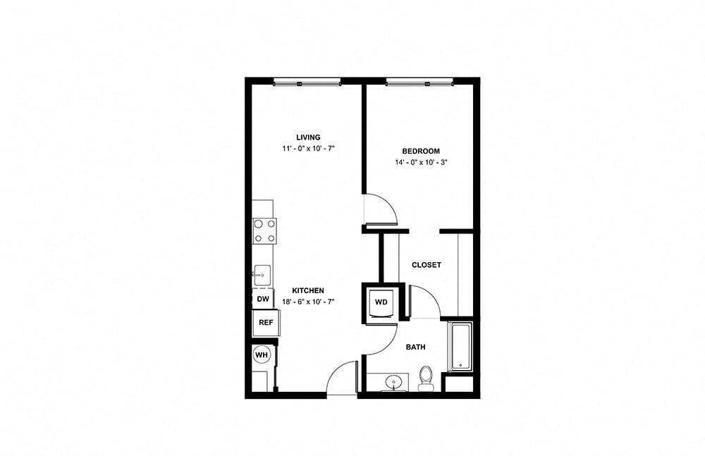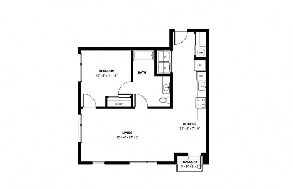 01C Plus - Floorplan 1 Apartment Unit: F304Apartment Model: 01C Plus$1,653Studio, 1 Bath, 690 sq ftAvailable NowFloorplan 01B