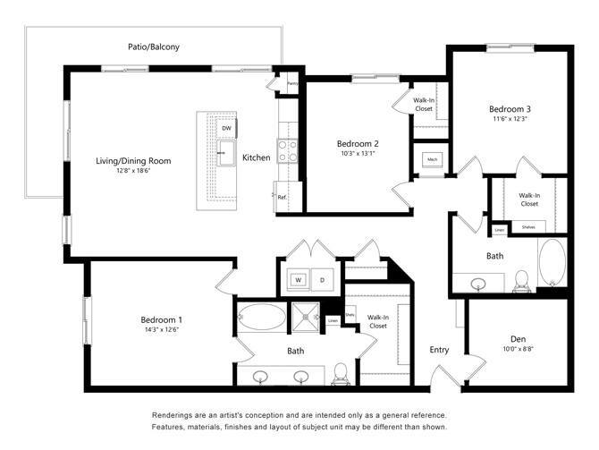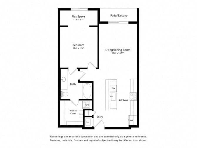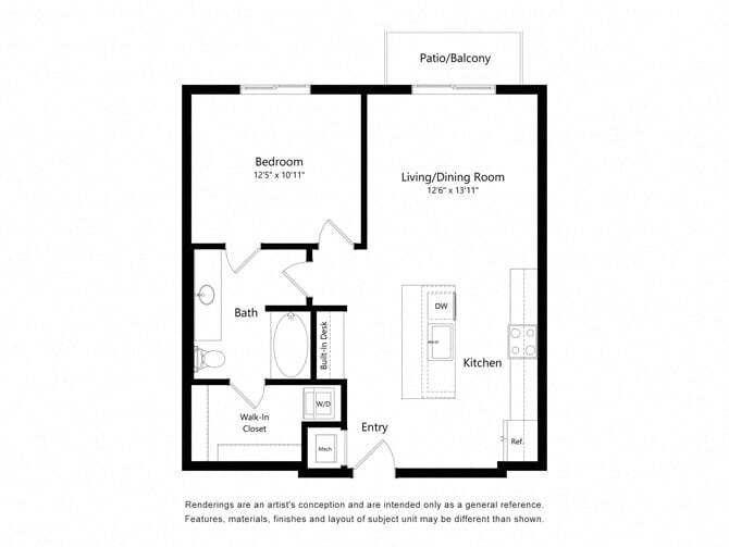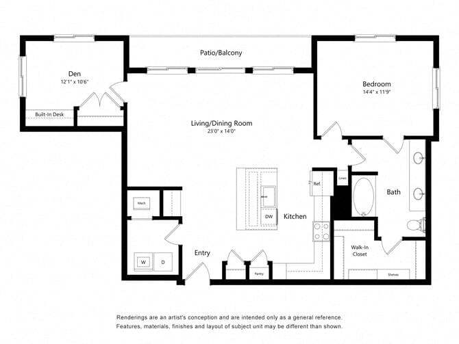 Studio, 1 Bath, 642 sq ftAvailable NowModel Gallery
