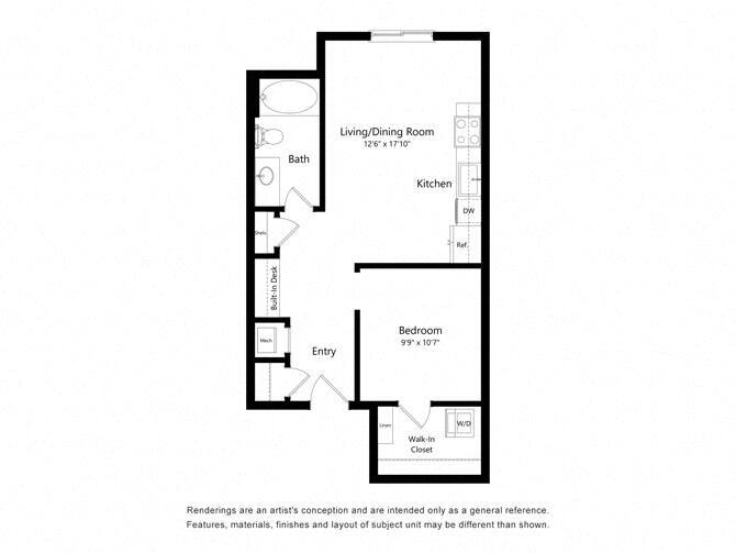 Apartment Model: S2Call For RatesStudio, 1 Bath, 618 sq ftUnavailableFloor plans are artist's rendering. All dimensions are approximate. Actual product and specifications may vary in dimension or detail. Not all features are available in every rental home. Prices and availability are subject to change. Base rent is based on monthly frequency. Additional fees may apply, such as but not limited to package delivery, trash, water, amenities, etc. Deposits vary. Please see a representative for details.