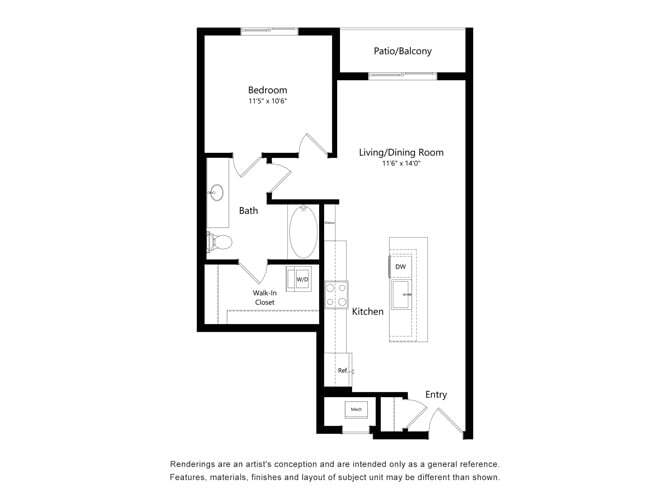 Studio, 1 Bath, 618 sq ftModel Gallery