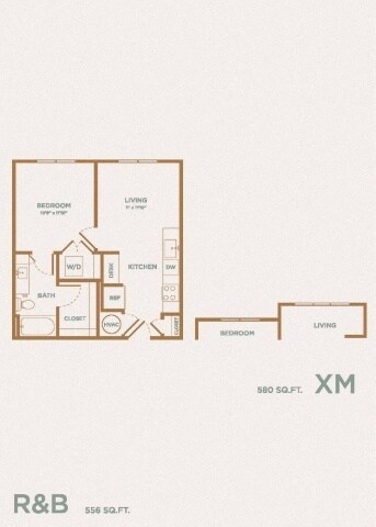 Apartment Model: R&BFrom $1,4241 Bedroom, 1 Bath, 556 sq ftAvailable NowFloor plans are artist's rendering. All dimensions are approximate. Actual product and specifications may vary in dimension or detail. Not all features are available in every rental home. Prices and availability are subject to change. Base rent is based on monthly frequency. Additional fees may apply, such as but not limited to package delivery, trash, water, amenities, etc. Deposits vary. Please see a representative for details.
