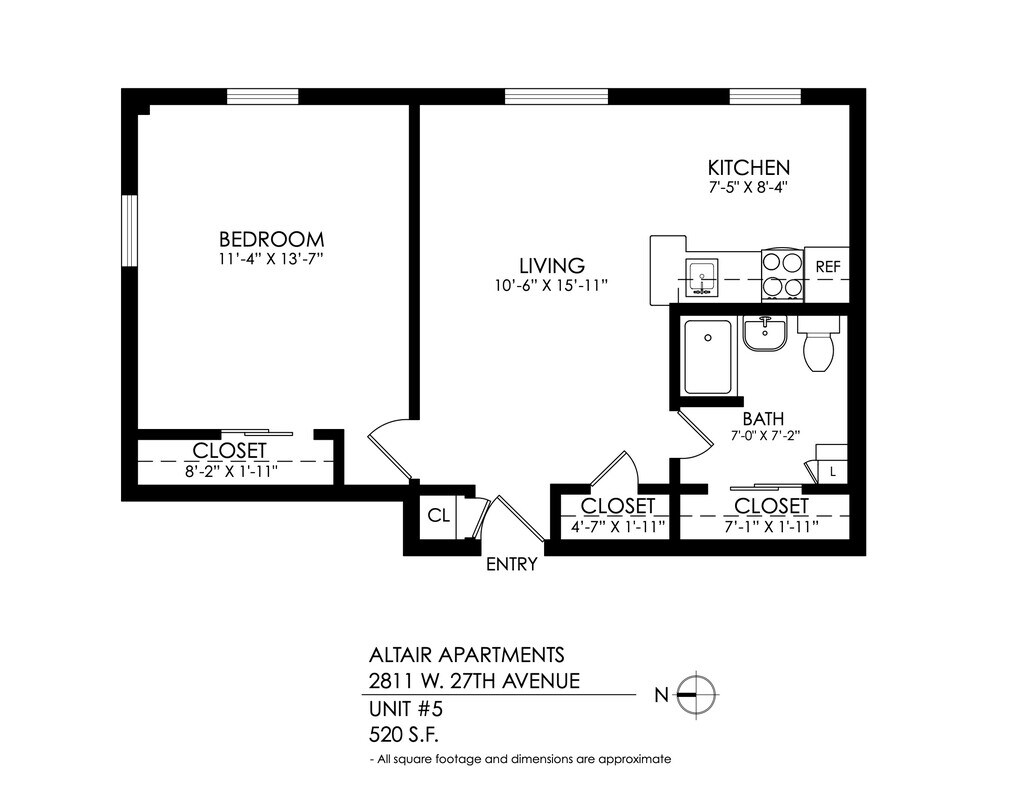 1 Bedroom - Floorplan 3 Apartment Unit: 05Apartment Model: 1 Bedroom$1,1951 Bedroom, 1 Bath, 520 sq ftAvailable Now