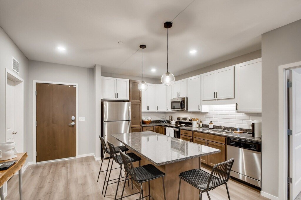 Altair delivers 95 luxury apartment homes and a vast array of amenities to the Fridley community. We offer a variety of spacious floor plans including studio, 1-bedroom, 2-bedroom, and 3-bedroom apartment homes. Our high-end amenities and finishes include granite countertops, stainless steel appliances, outdoor pool, club room, coworking space, fitness center with a private yoga studio, and private outdoor dog park. Located adjacent to Fridley Transit Station on the Northstar Commuter Rail, Altair is just one stop away from Target Field Station and offers direct access to Downtown Minneapolis.