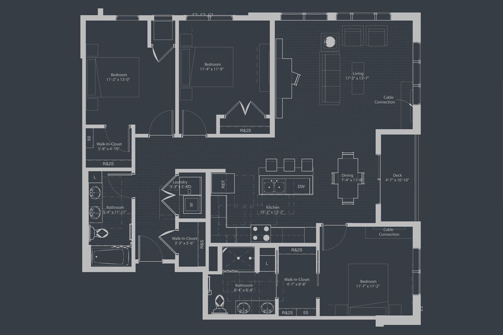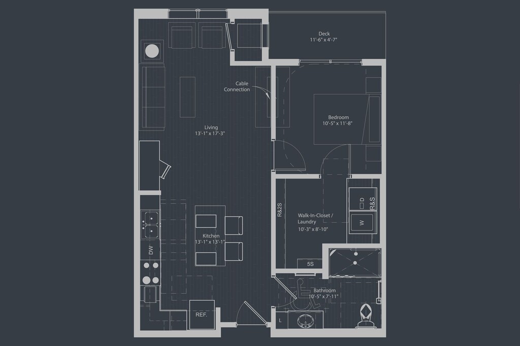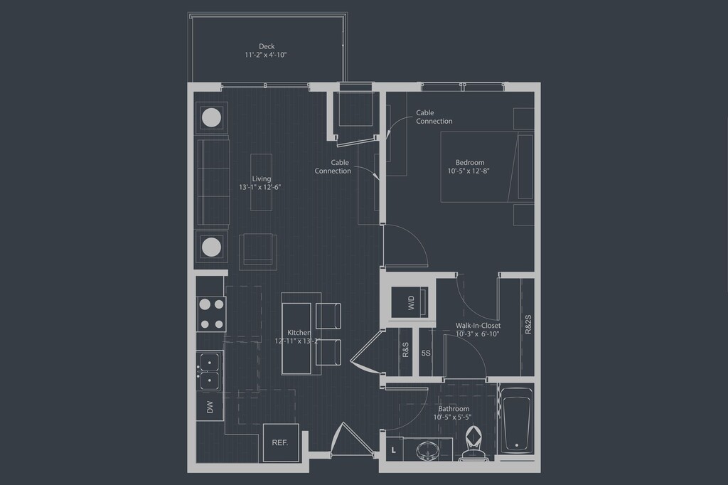 1 Bed, 1 Bath, 688 sq ftPlus FeesAvailable NowModel Gallery