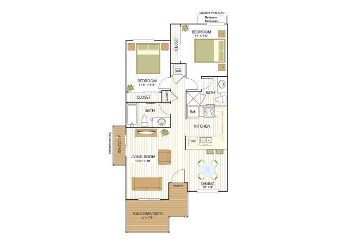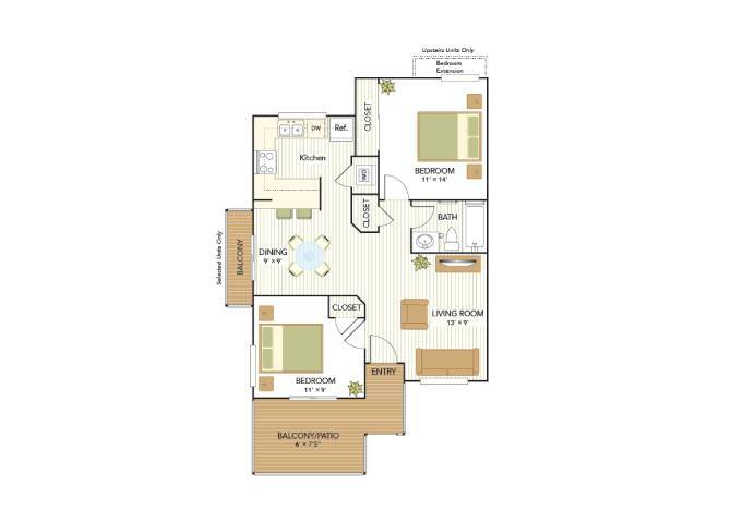 2 Beds, 1 Bath, 750 sq ftAvailable NowModel Gallery