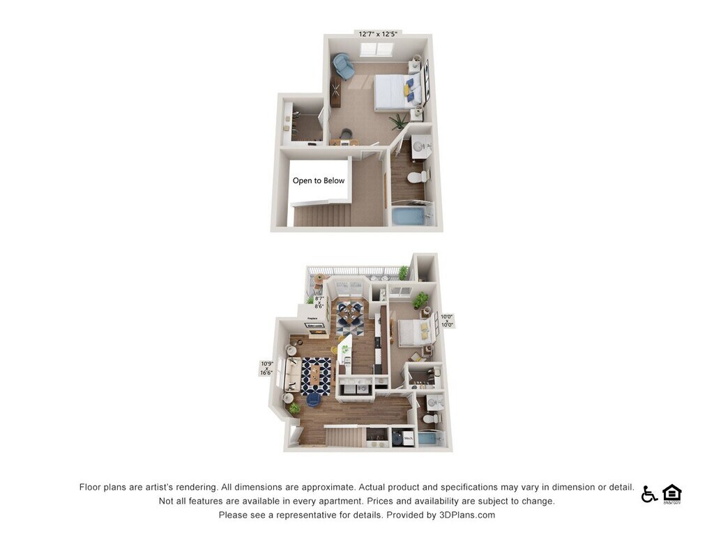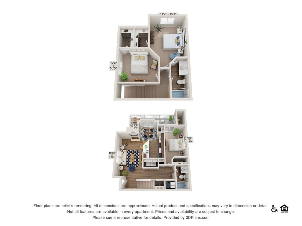 Sierra - 2x2 - Image 1 Floor plans are artist's rendering. All dimensions are approximate. Actual product and specifications may vary in dimension or detail. Not all features are available in every rental home. Prices and availability are subject to change. Base rent is based on monthly frequency. Additional fees may apply, such as but not limited to package delivery, trash, water, amenities, etc. Deposits vary. Please see a representative for details.