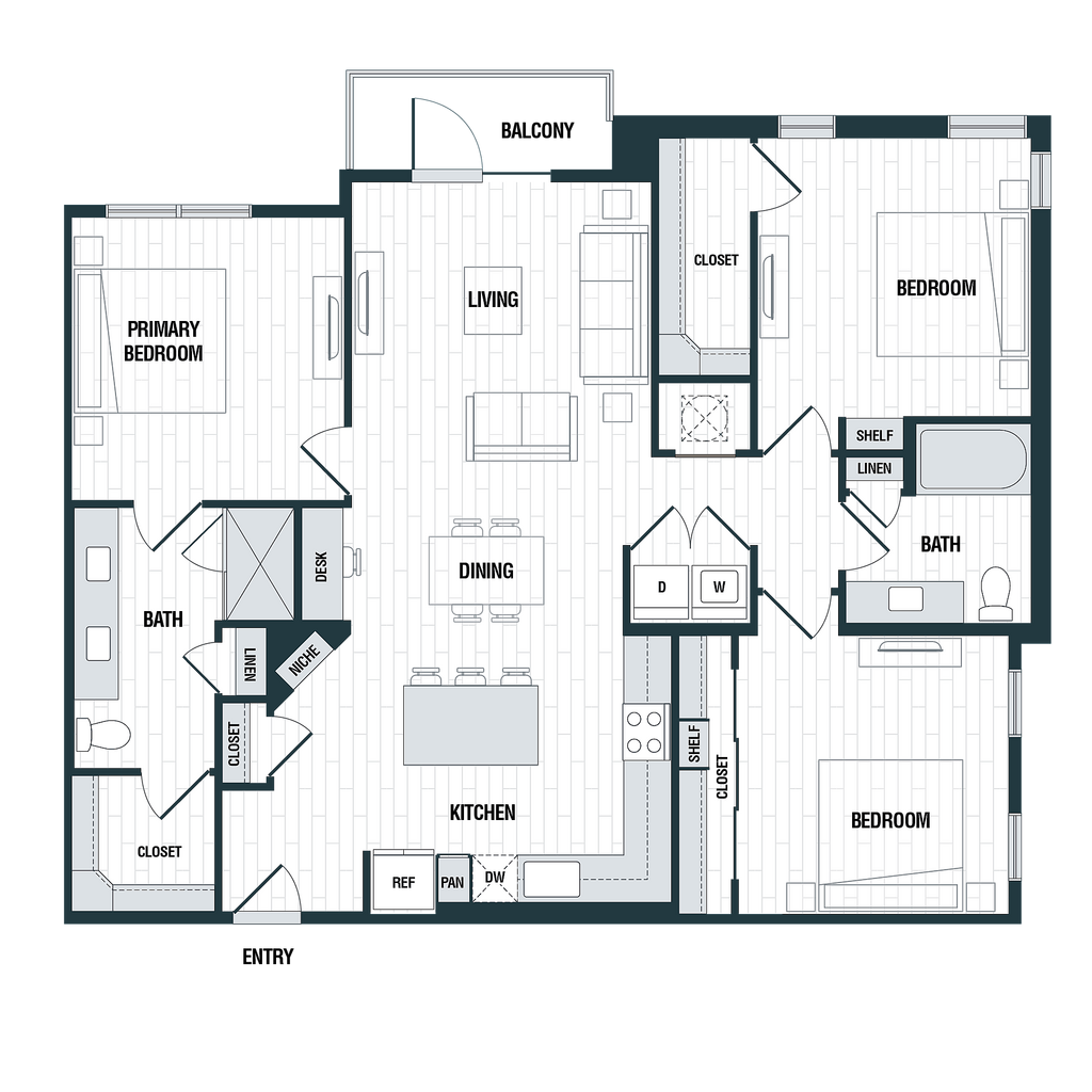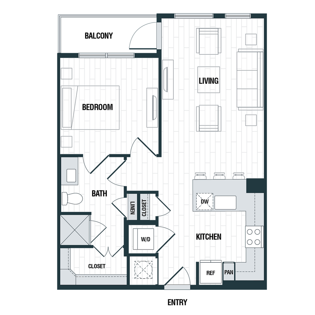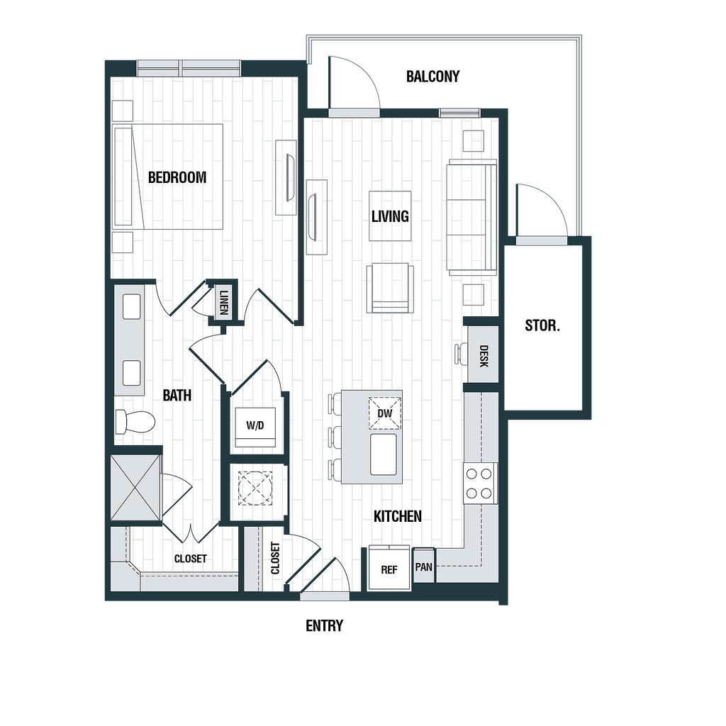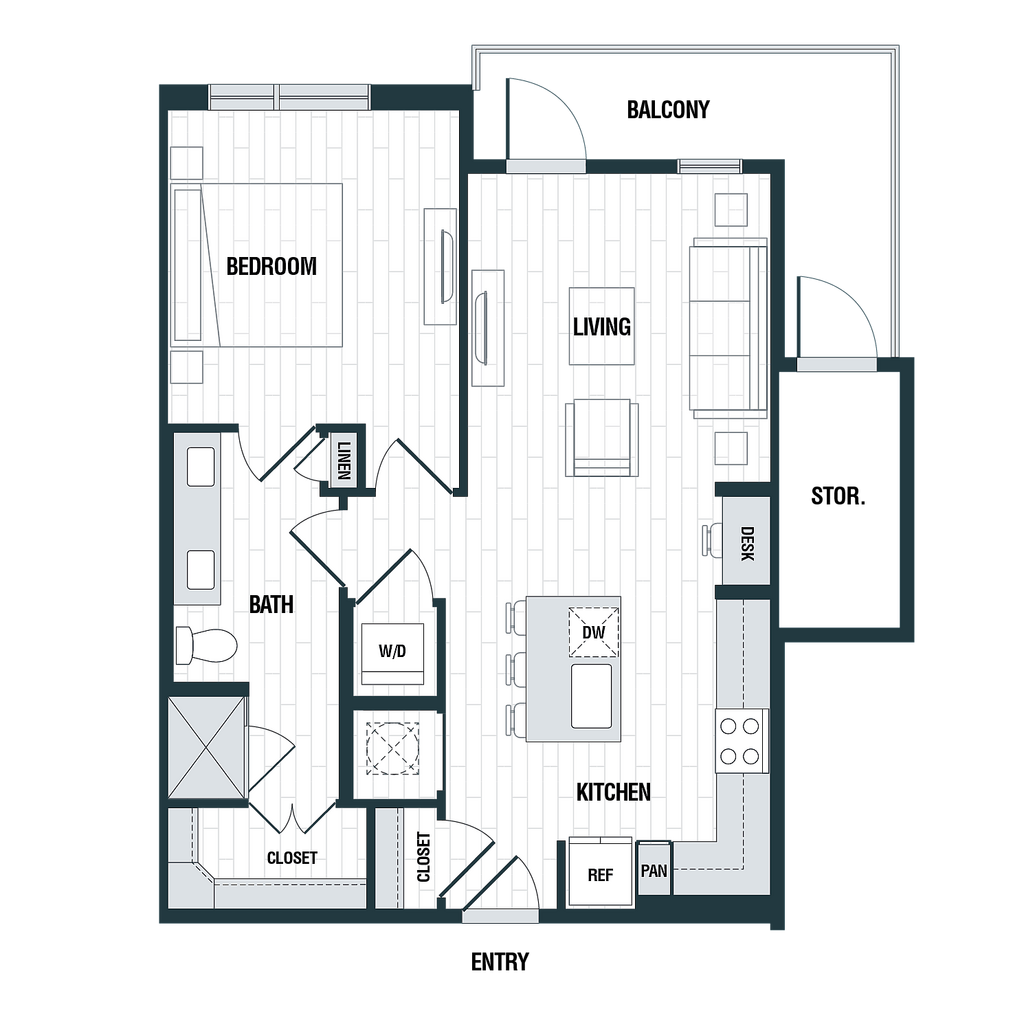 1 Bed, 1 Bath, 707 sq ftAvailable NowModel Gallery