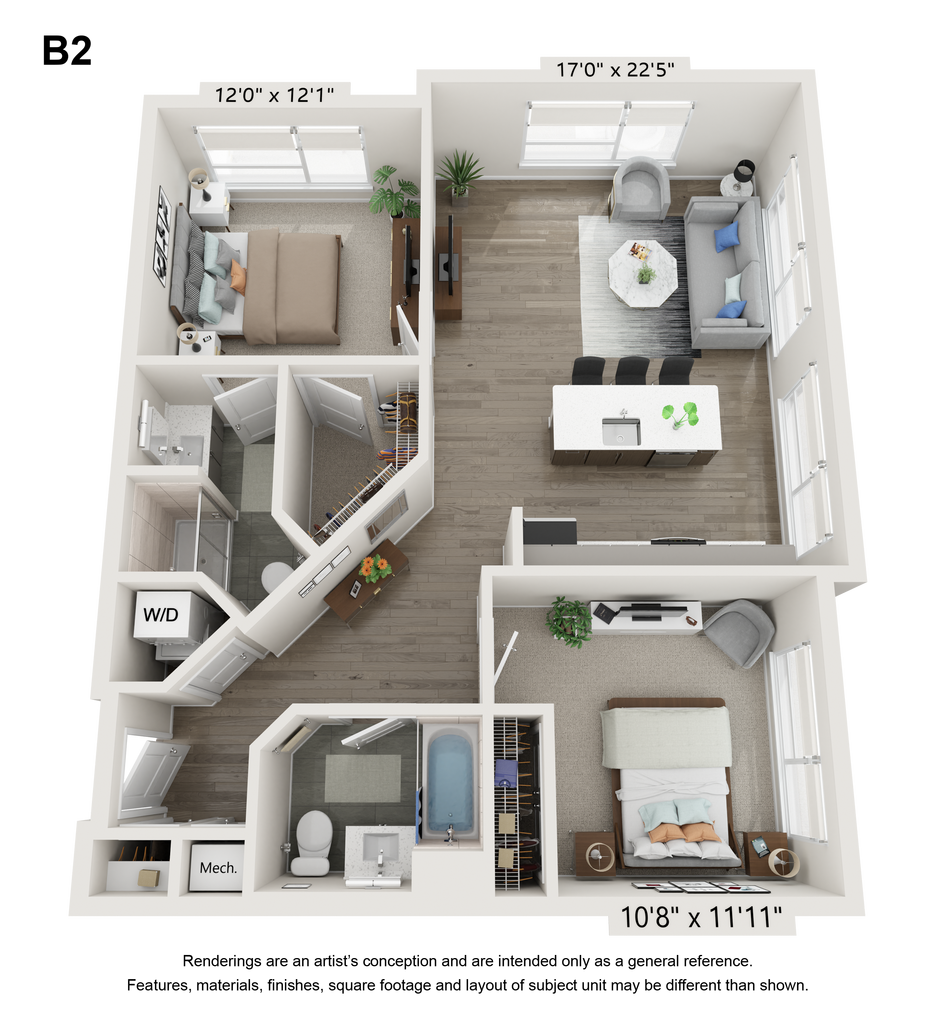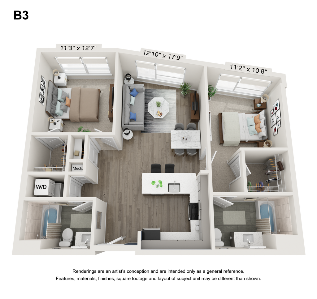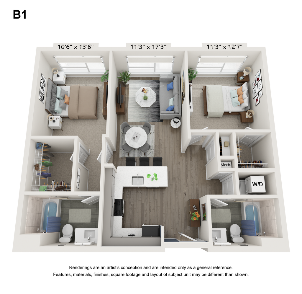 1 Bed, 1 Bath, 947 sq ftPlus FeesAvailable NowModel Gallery
