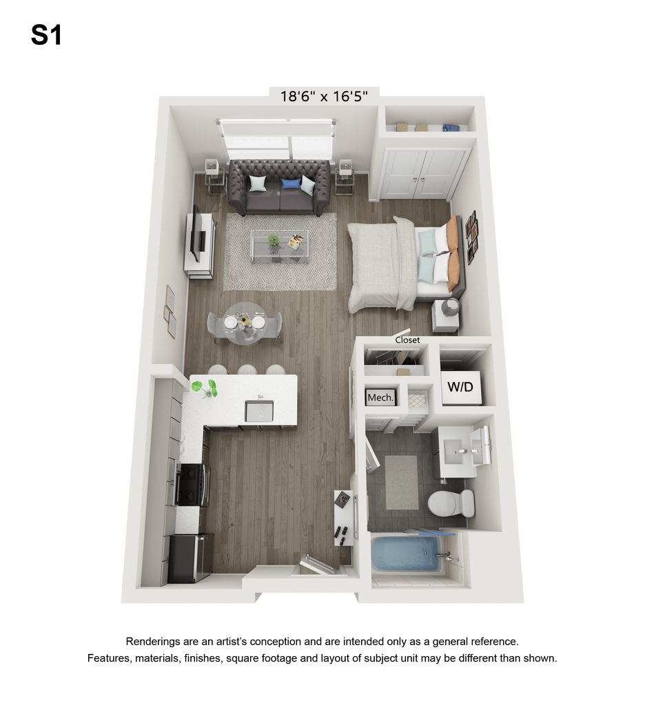 Studio, 1 Bath, 559 sq ftModel Gallery