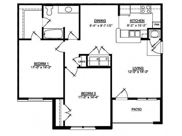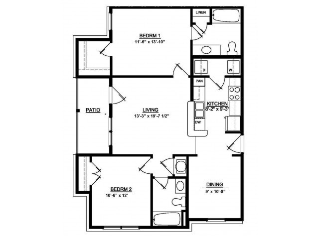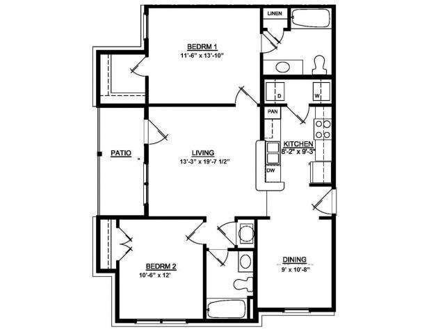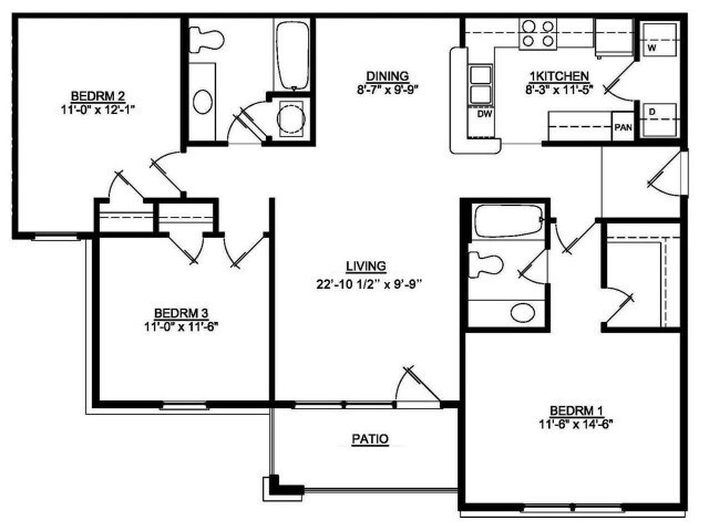 2 BDR 2 Bath 60 Summit - Floorplan 1 3 Bedrooms