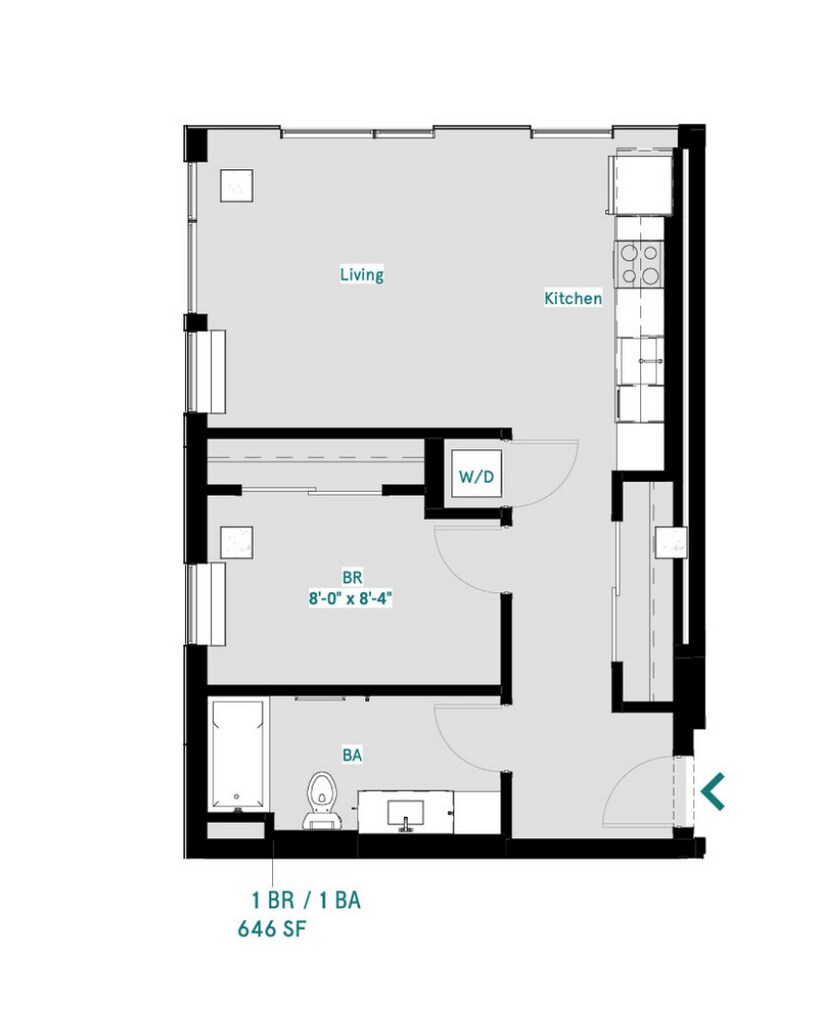 al-S4B - Floorplan 1 Apartment Unit: 713Apartment Model: al-S4B$1,079Studio, 1 Bath, 390 sq ftAvailable NowApartment Unit: 616Apartment Model: al-S4B$1,063Studio, 1 Bath, 390 sq ftAvailable Now1 Bedroom