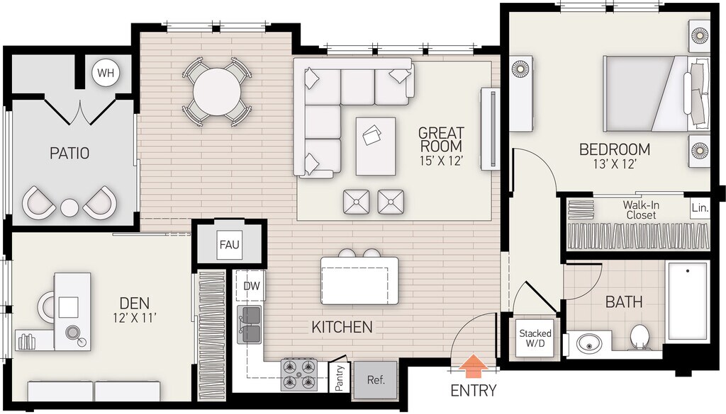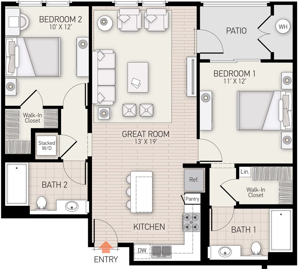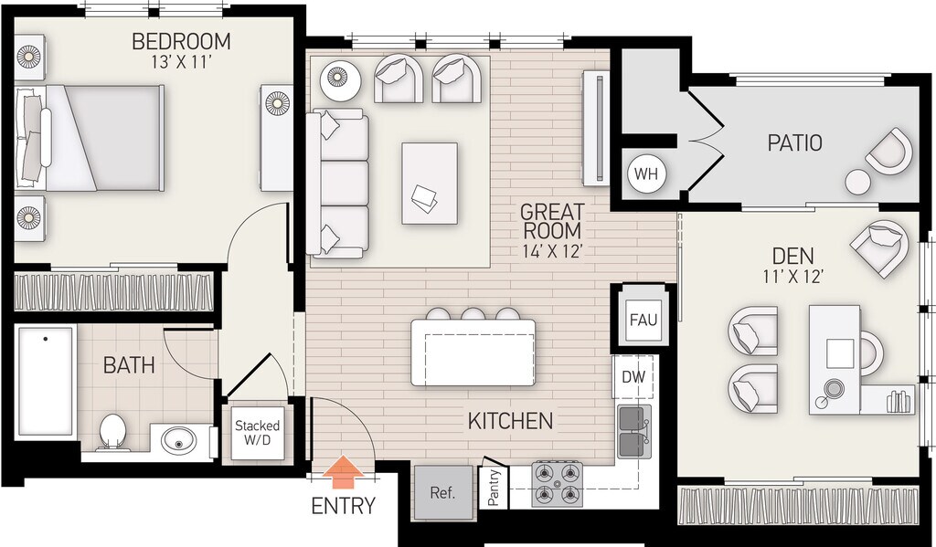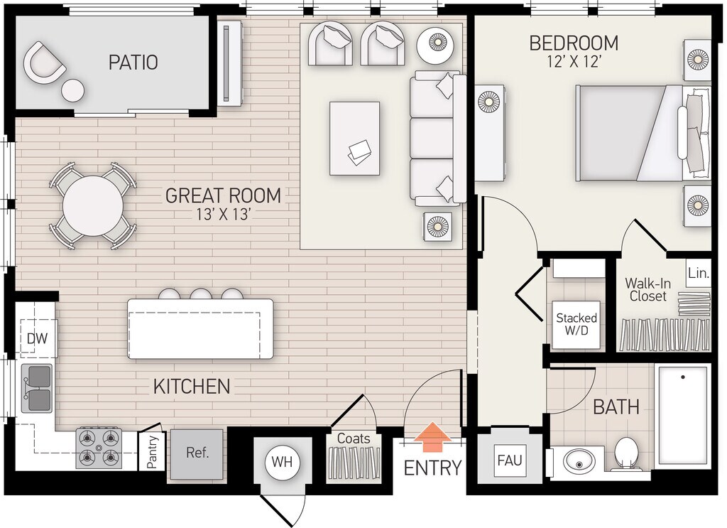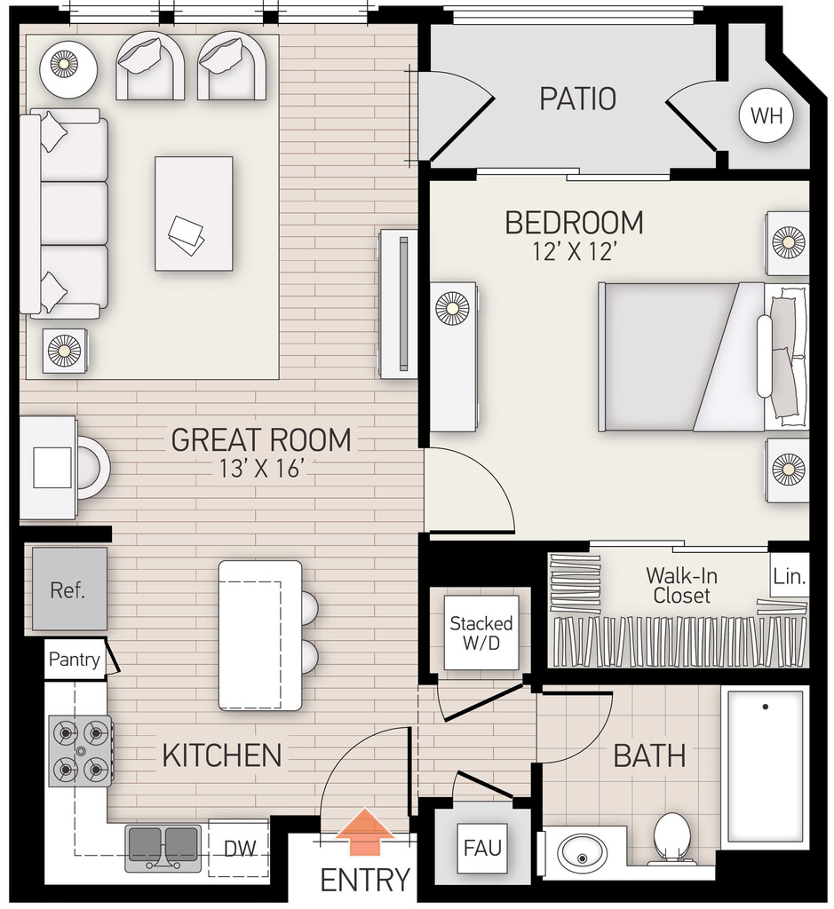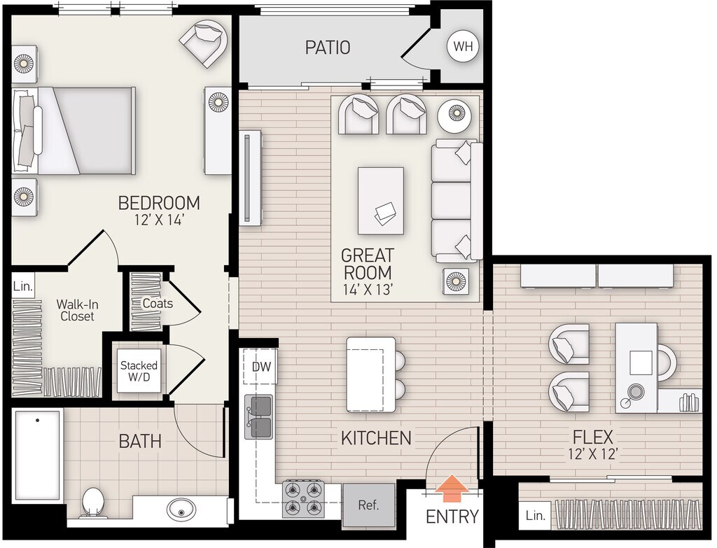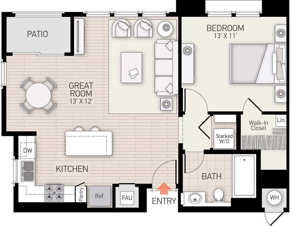 Apartment Model: Plan GFrom $2,9501 Bedroom, 1 Bath, 746 sq ftAvailable Now![]()