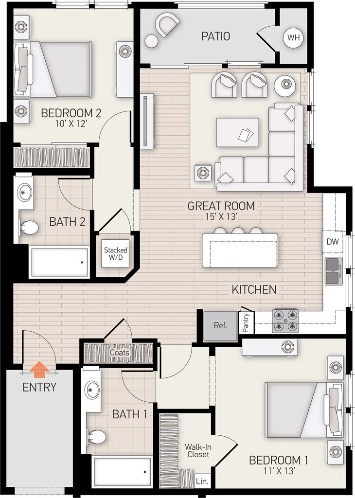 1 Bed, 1 Bath, 746 sq ftAvailable NowModel Gallery