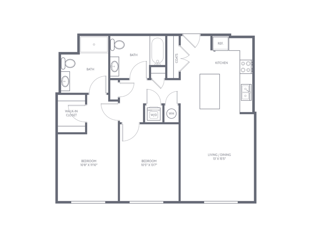 2 Beds, 2 Baths, 1022 sq ftPlus FeesAvailable Nov 10Largest 2 BedroomThis is the largest 2 Bedroom at this PropertyModel Gallery