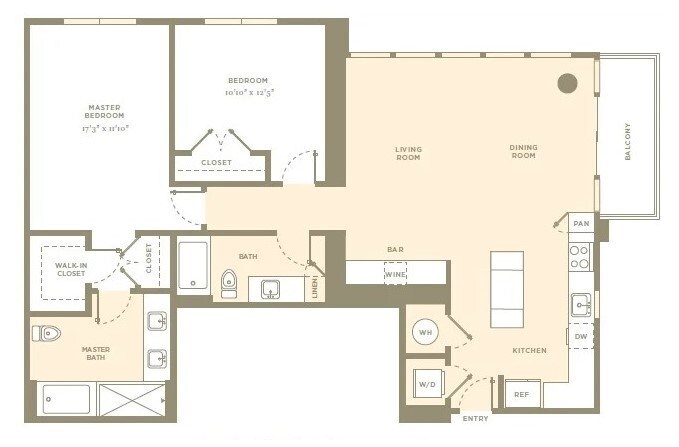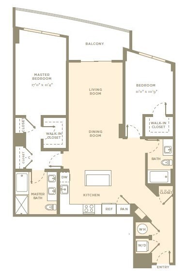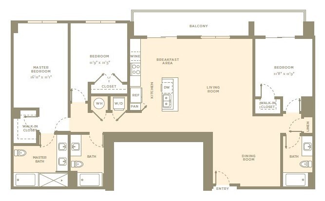1 Bed, 2 Baths, 1164 sq ftLargest 1 BedroomThis is the largest 1 Bedroom at this PropertyModel Gallery