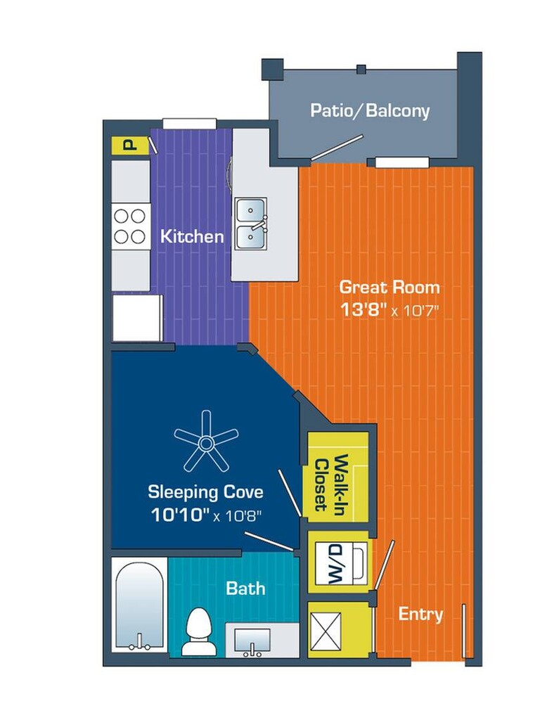 Studio, 1 Bath, 558 sq ftAvailable NowModel Gallery