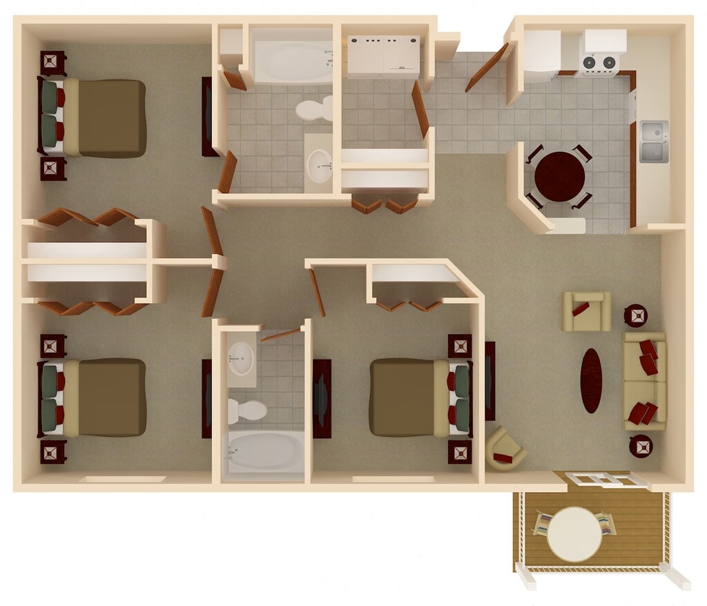 3 Beds, 2 Baths, 1116 sq ftModel Gallery