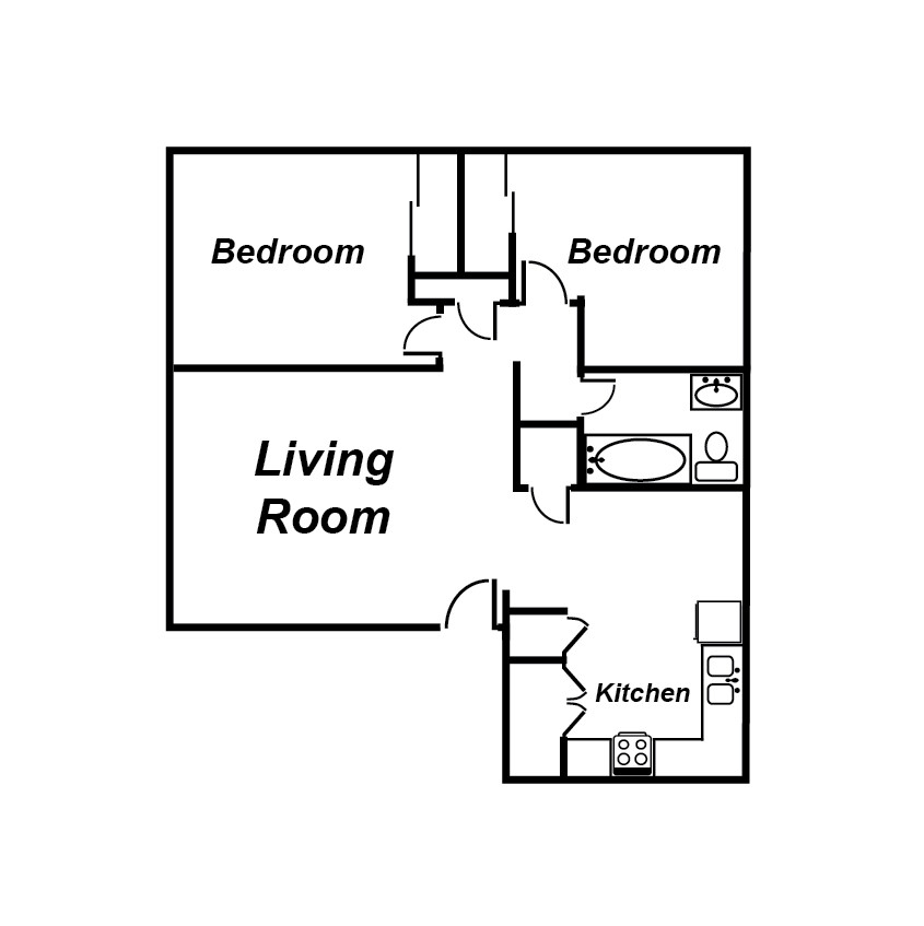 Apartment Model: 2 Bed 1 BathFrom $8992 Bedroom, 1 Bath, 800 sq ftAvailable NowFloorplansPhotos![]()