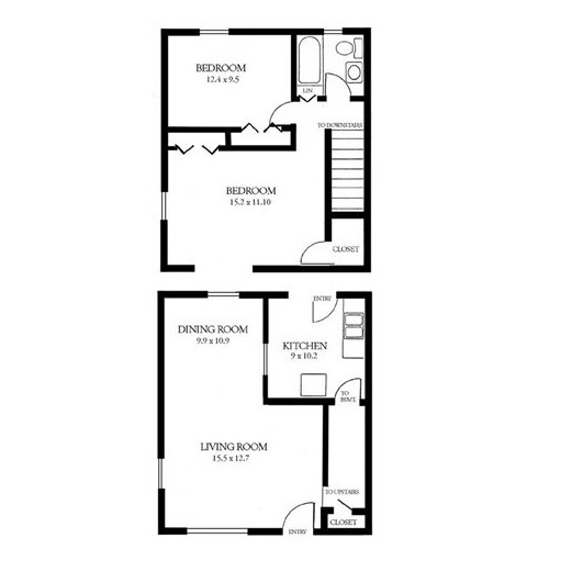 Apartment Model: 2 Bed 1 Bath TownhomeFrom $1,1532 Bedroom, 1 Bath, 940 sq ftAvailable NowFloorplansPhotos![]()