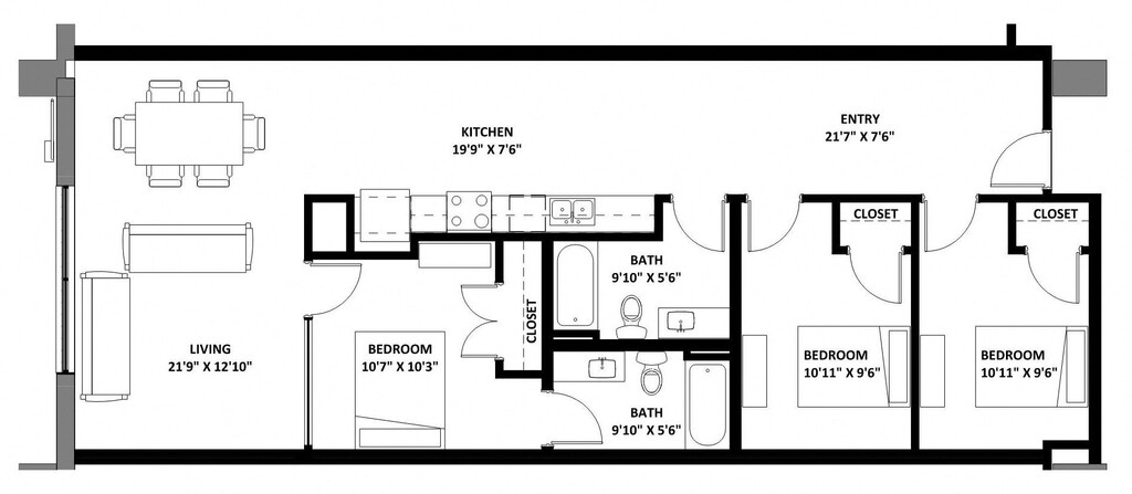 Apartment Model: 2x1From $1,1502 Bedroom, 1 Bath, 664-936 sq ftAvailable Now![]()
