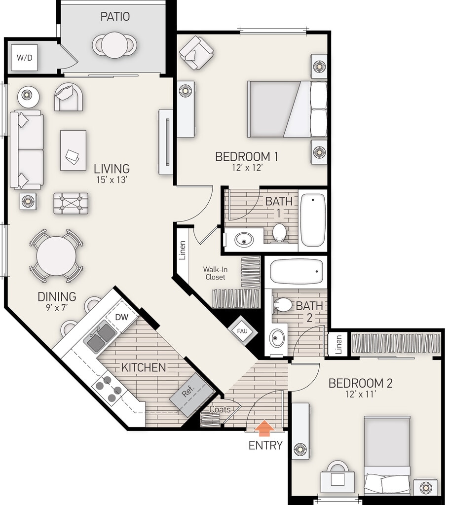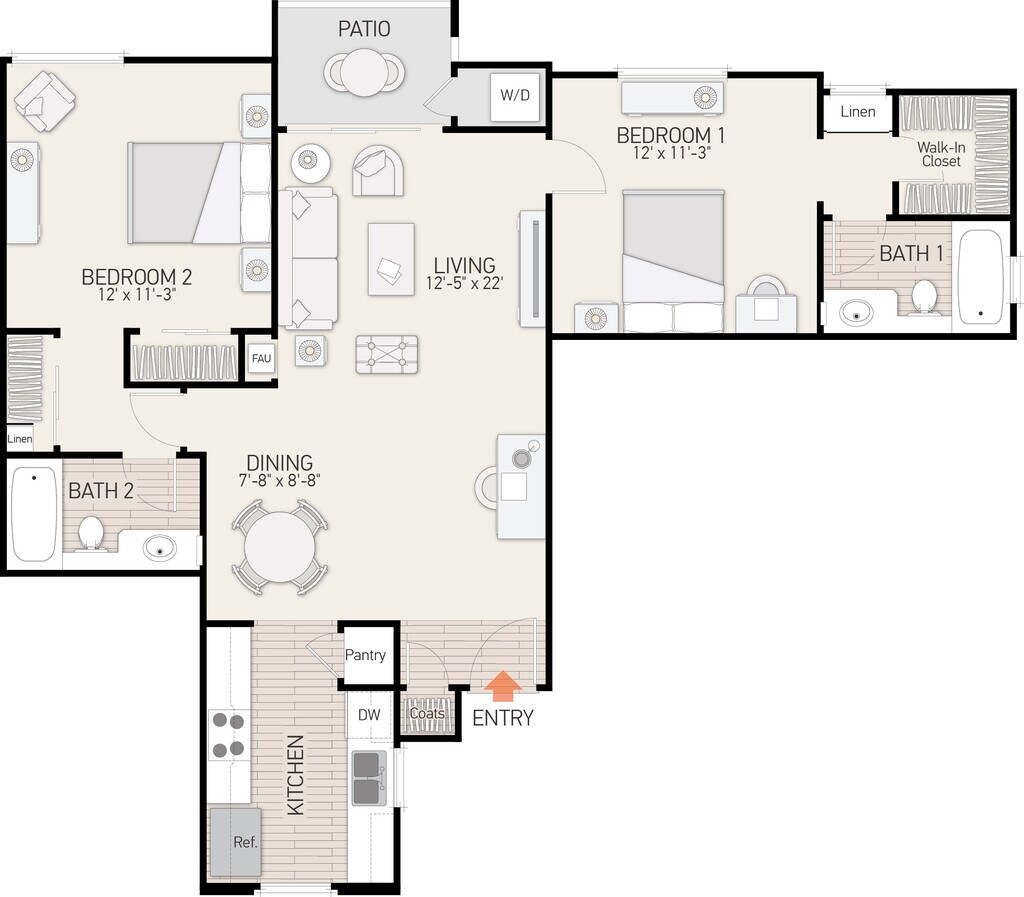2 Beds, 2 Baths, 1031 sq ftAvailable NowModel Gallery