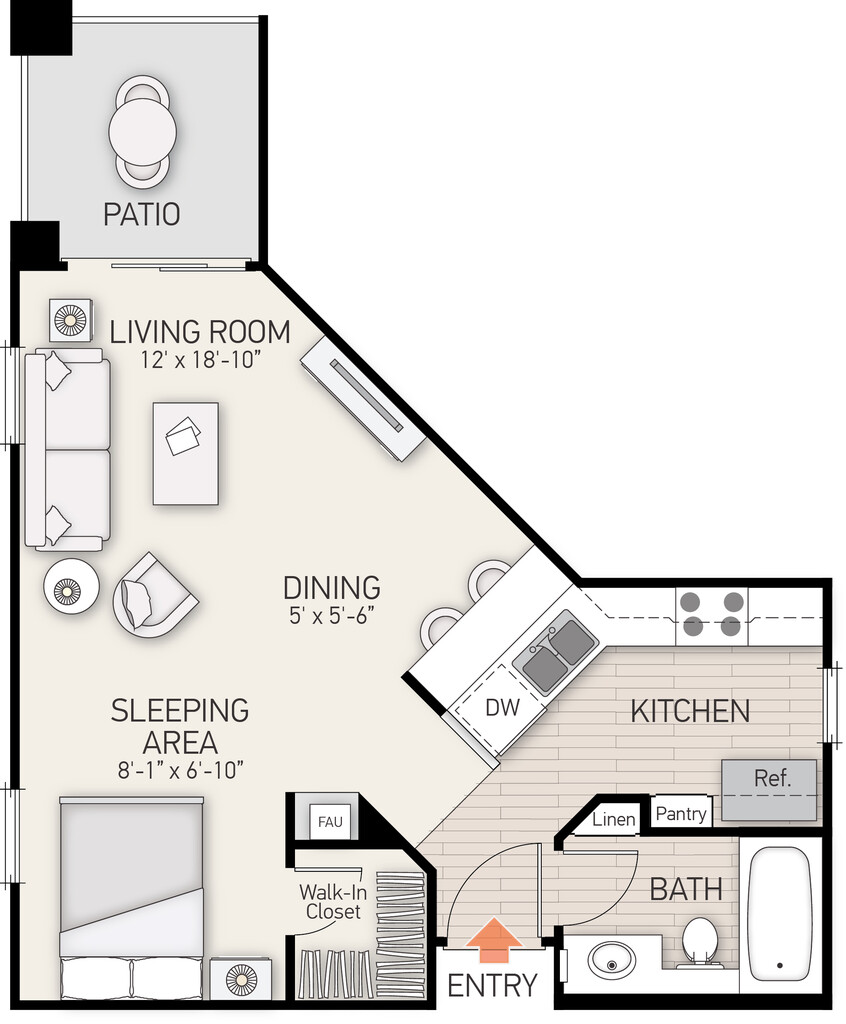 Studio, 1 Bath, 504 sq ftAvailable NowModel Gallery
