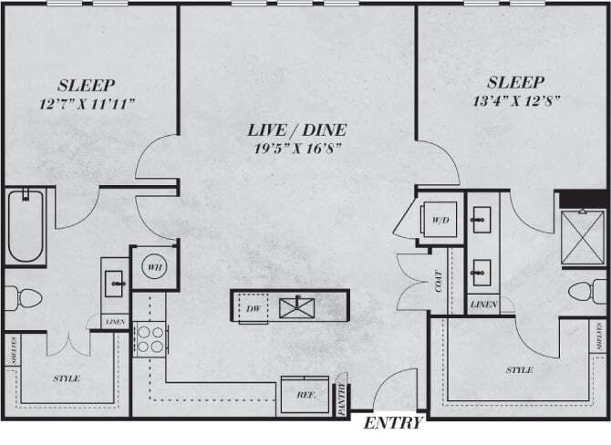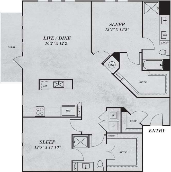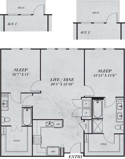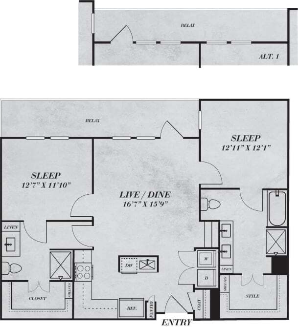 1 Bed, 1 Bath, 973 sq ftAvailable NowModel Gallery