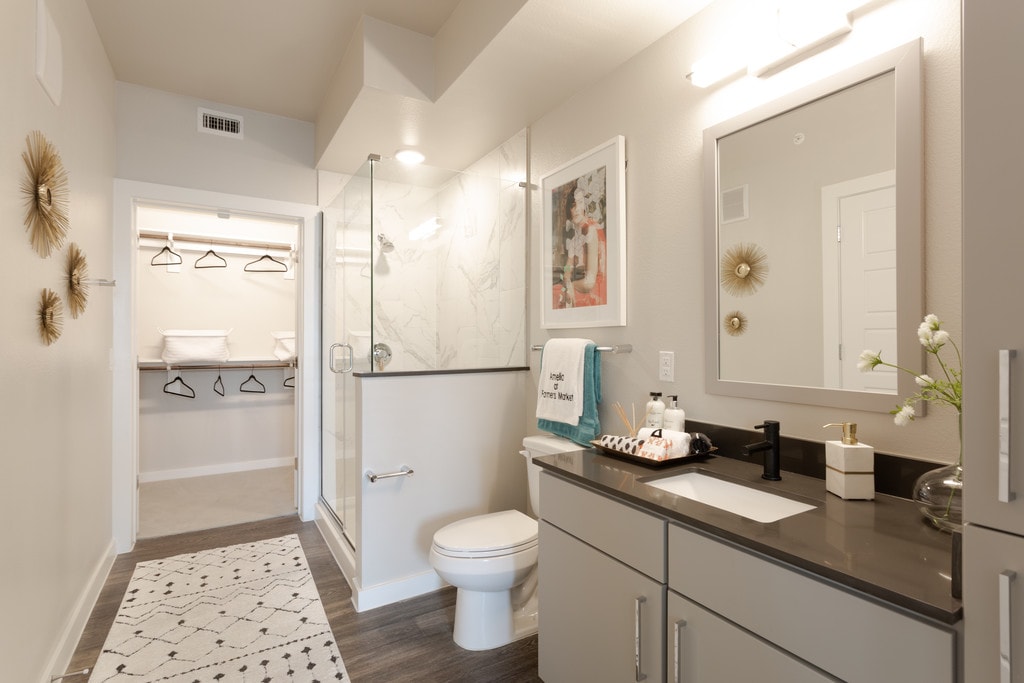 Nestled in Dallas' iconic armers Market District, Amelia at Farmers Market is a boutique community offering upscale design and extravagant luxuries. Choose from studio, one, or two-bedroom apartments featuring quartz countertops, oversized windows, and in-home laundry facilities. Recharge in the rooftop lounge, stay productive in the coworking space, or relax with your pet in the spa-inspired pet retreated.