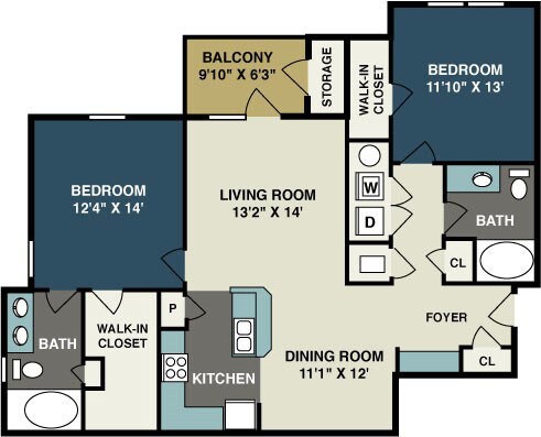 Apartment Model: Two Bedroom Two BathFrom $1,6152 Bedroom, 2 Bath, 1154-1161 sq ftAvailable Now![]()