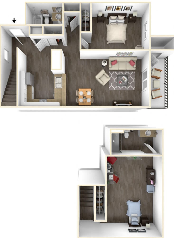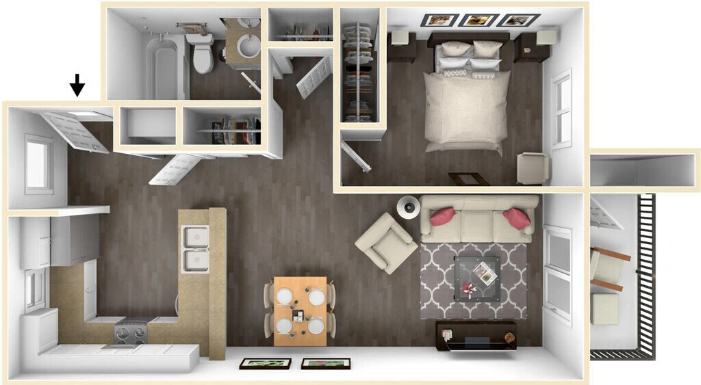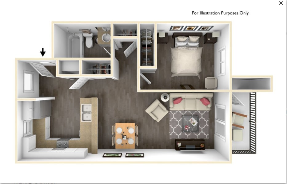 1 Bed, 1 Bath, 597 sq ftModel Gallery