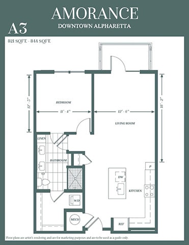 Apartment Model: A3- JadeFrom $2,6511 Bedroom, 1 Bath, 821-844 sq ftAvailable November 21, 2025Floor plans are artist's rendering. All dimensions are approximate. Actual product and specifications may vary in dimension or detail. Not all features are available in every rental home. Prices and availability are subject to change. Base rent is based on monthly frequency. Additional fees may apply, such as but not limited to package delivery, trash, water, amenities, etc. Deposits vary. Please see a representative for details.