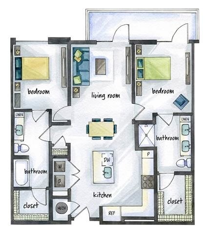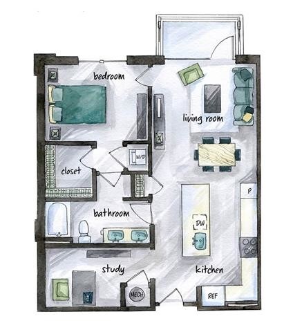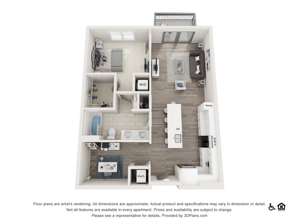 A1- Opal - Floorplan 1 Floor plans are artist's rendering. All dimensions are approximate. Actual product and specifications may vary in dimension or detail. Not all features are available in every rental home. Prices and availability are subject to change. Base rent is based on monthly frequency. Additional fees may apply, such as but not limited to package delivery, trash, water, amenities, etc. Deposits vary. Please see a representative for details.