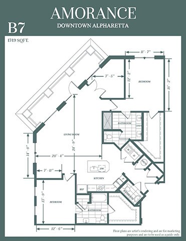 Apartment Model: A2- RubyFrom $2,5111 Bedroom, 1 Bath, 708 sq ftAvailable NowFloor plans are artist's rendering. All dimensions are approximate. Actual product and specifications may vary in dimension or detail. Not all features are available in every rental home. Prices and availability are subject to change. Base rent is based on monthly frequency. Additional fees may apply, such as but not limited to package delivery, trash, water, amenities, etc. Deposits vary. Please see a representative for details.