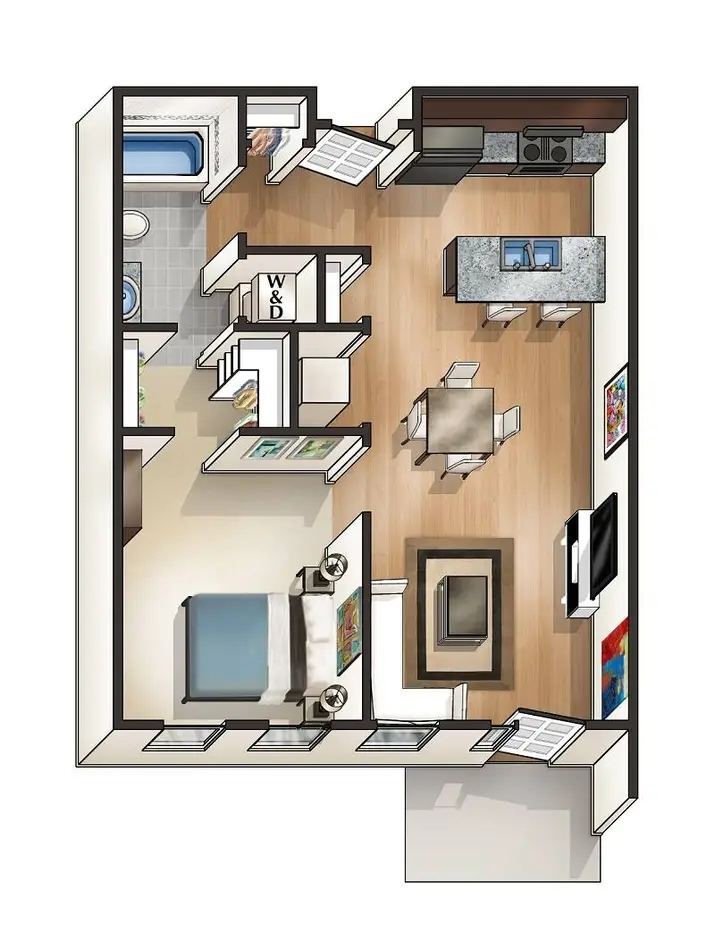 1 Bed, 1 Bath, 640-710 sq ftAvailable Nov 5Model Gallery
