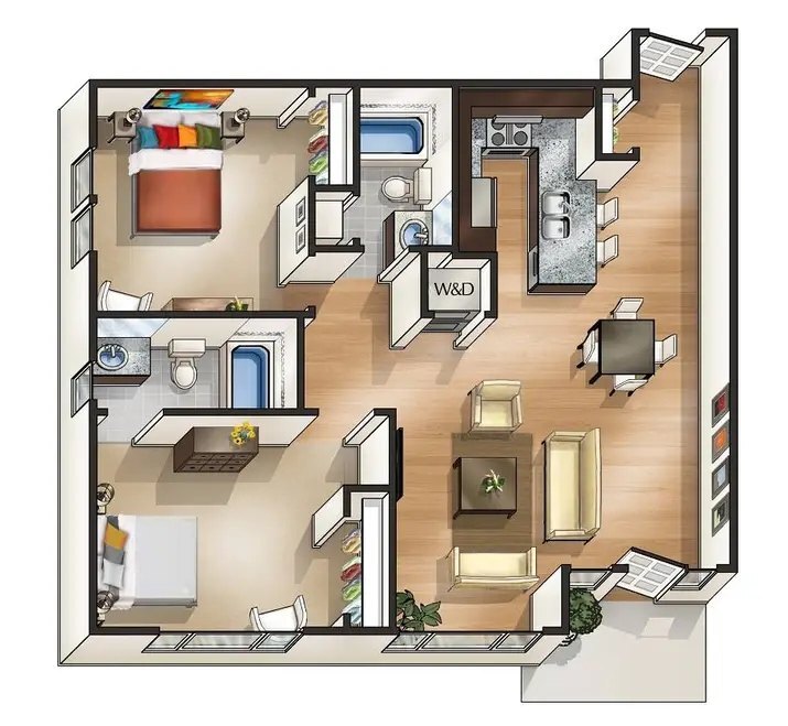 2 Beds, 2 Baths, 1100 sq ftAvailable NowModel Gallery