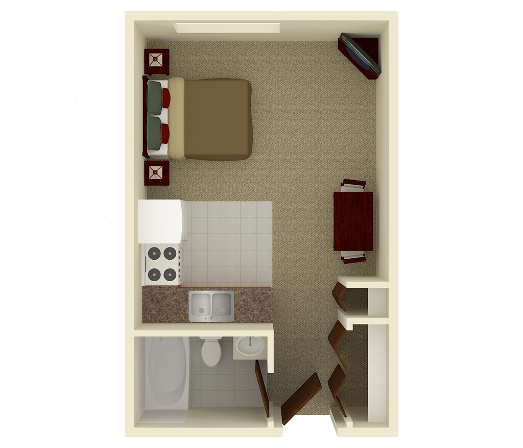 Apartment Model: Efficiency$510Studio, 1 Bath, 371 sq ftAvailable January 15, 2026![]()
