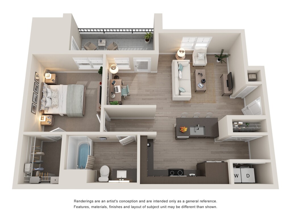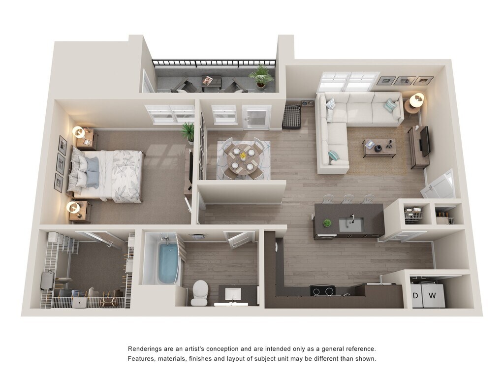 1 Bed, 1 Bath, 623 sq ftModel Gallery
