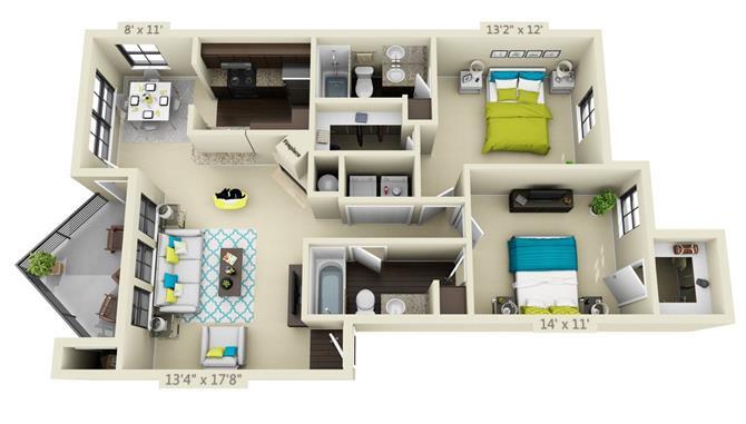 2 Beds, 2 Baths, 1020 sq ftAvailable NowModel Gallery
