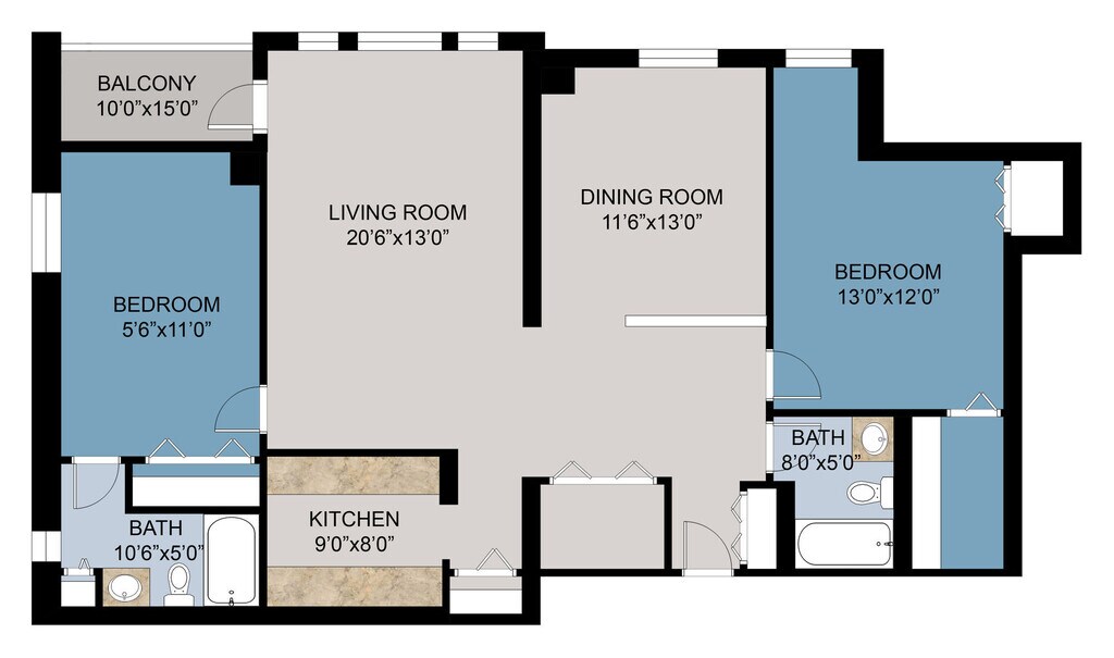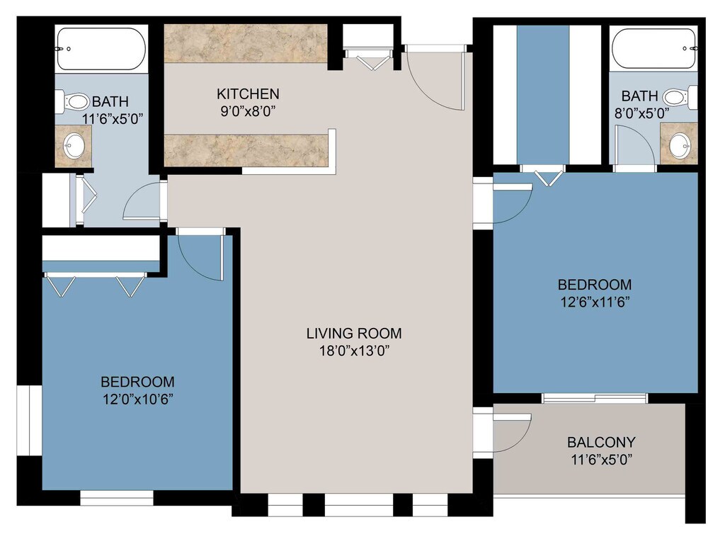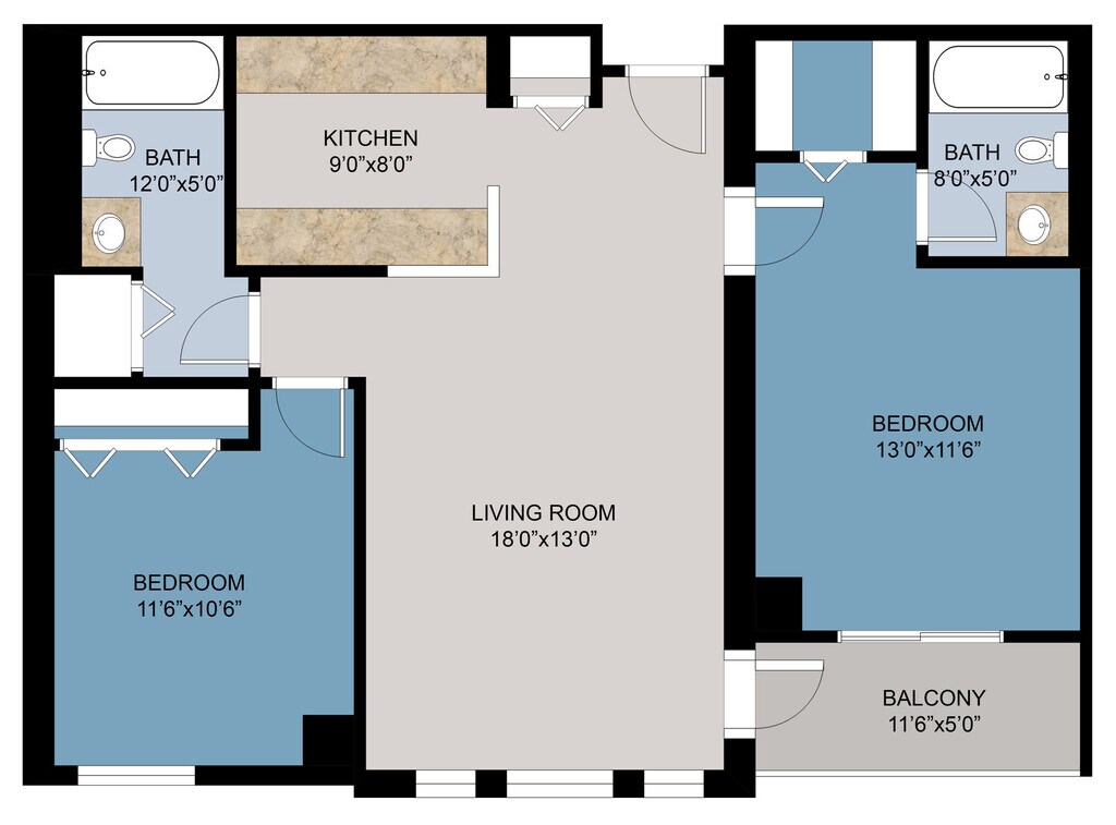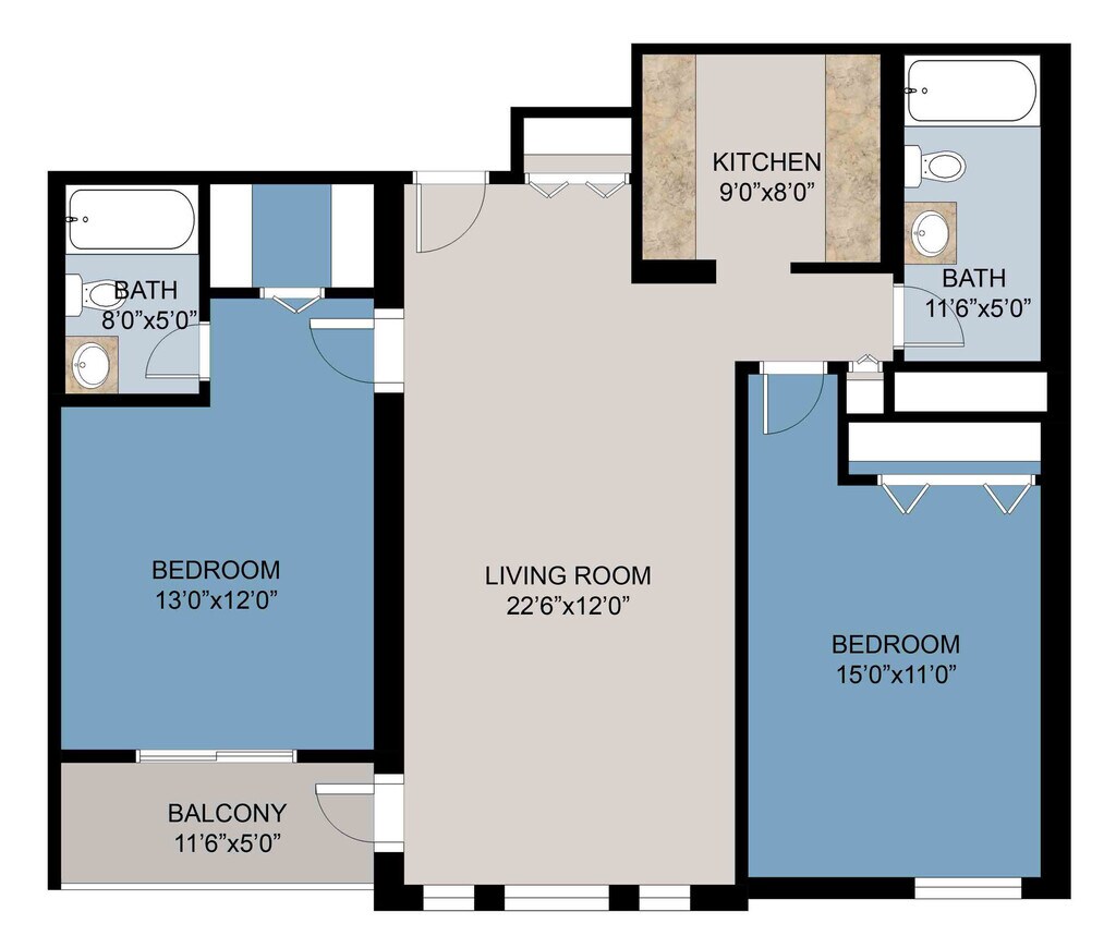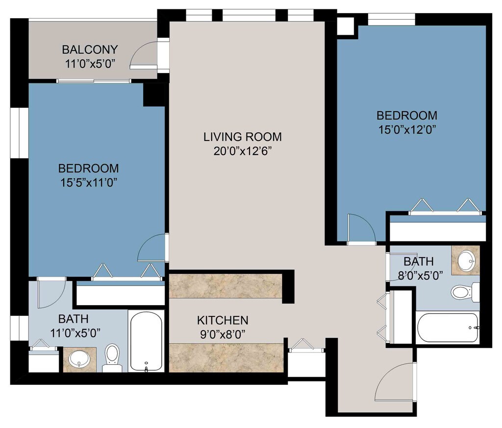 Apartment Model: 2 Bed 1175$2,9752 Bedroom, 2 Bath, 1175 sq ftUnavailable![]()