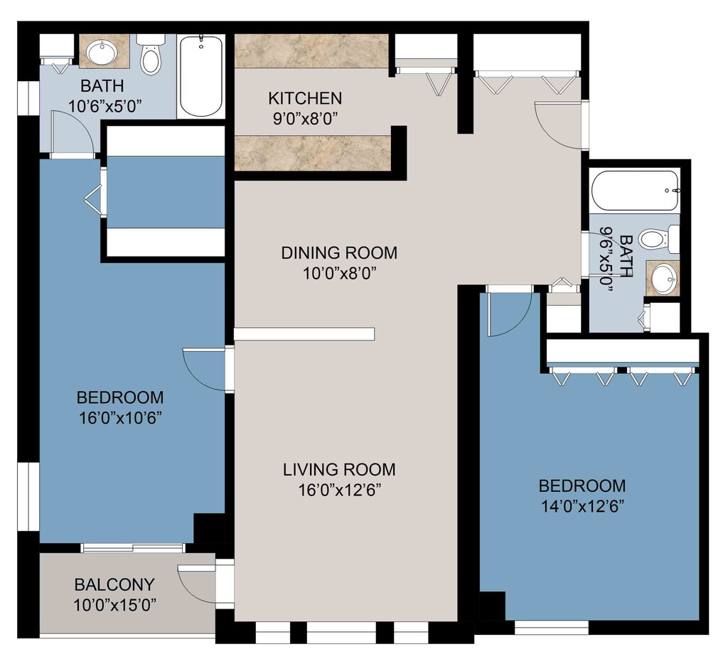 Apartment Model: 2 Bed 890b$2,6002 Bedroom, 2 Bath, 890 sq ftUnavailable![]()