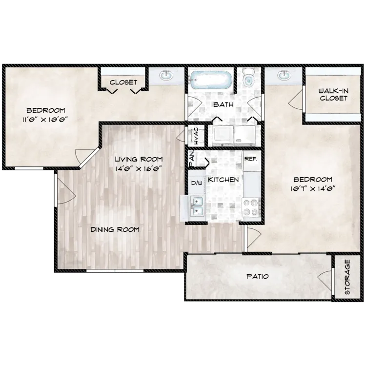 Apartment Model: 2x2 LI2 Bedroom, 2 Bath, 890 sq ftAvailable Now![]()