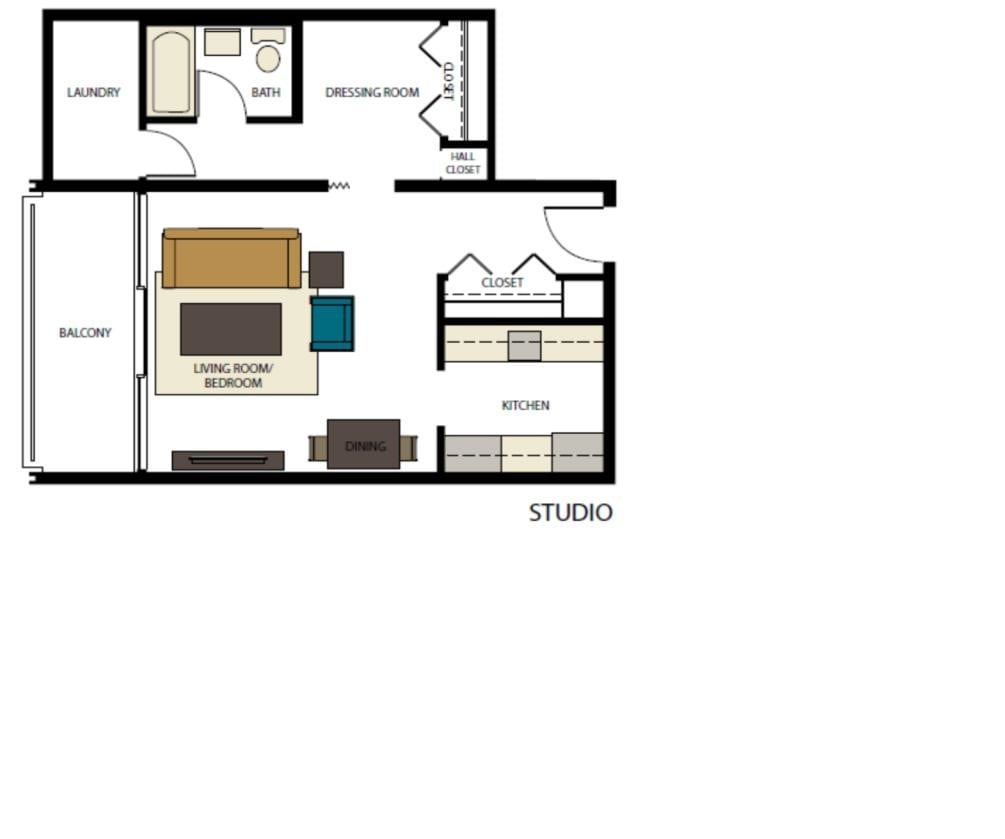 Studio, 1 Bath, 600 sq ftModel Gallery