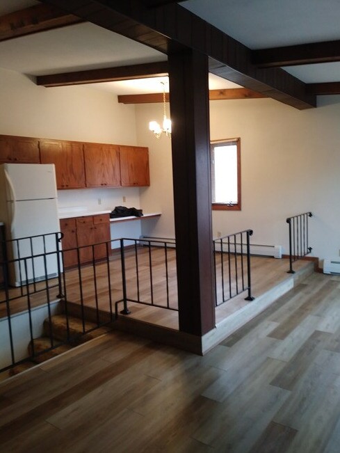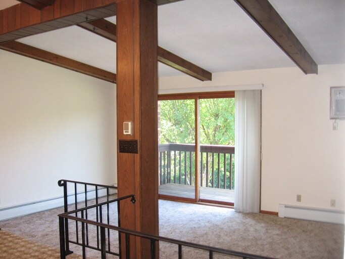 Two Bedroom Apartment in South Saint Cloud, along the Beaver Island Walking Trail. Each unit in this unique building has 2 levels. Upper level includes open format, with open beam ceilings, entry area; kitchen with lots of cupboards; dining area; living room; and balcony. Lower level includes ceramic bath; 2 bedrooms with 3 large closets. This is a quiet area and building. Heat, city water, garage, garbage, are included in the monthly rent of $1060.00. Close to highway 75 and a golf course. Walking trails by the Mississippi River available. A variety of convenience stores, banks, mini malls and restaurants close by Sorry no pets are accepted. Good credit report and references is required.