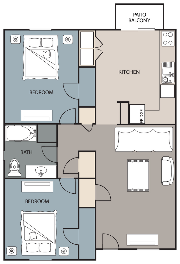 2 Beds, 1 Bath, 796 sq ftAvailable NowModel Gallery