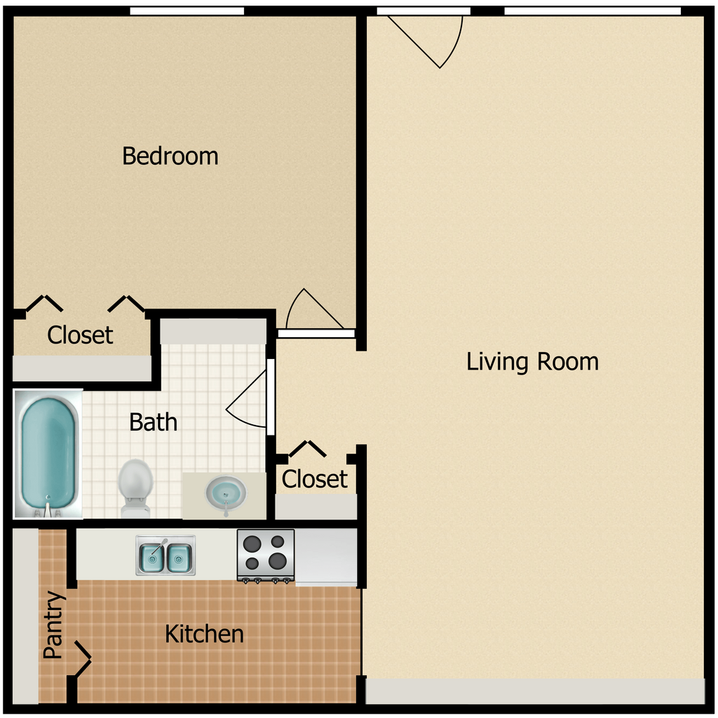 Apartment Model: 1Bed 1 BathFrom $6951 Bedroom, 1 Bath, 580 sq ftAvailable Now![]()