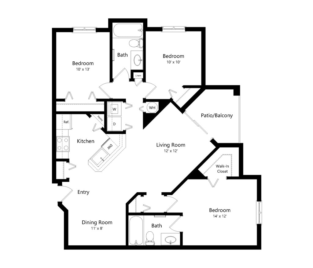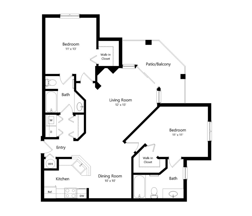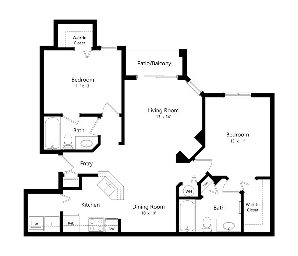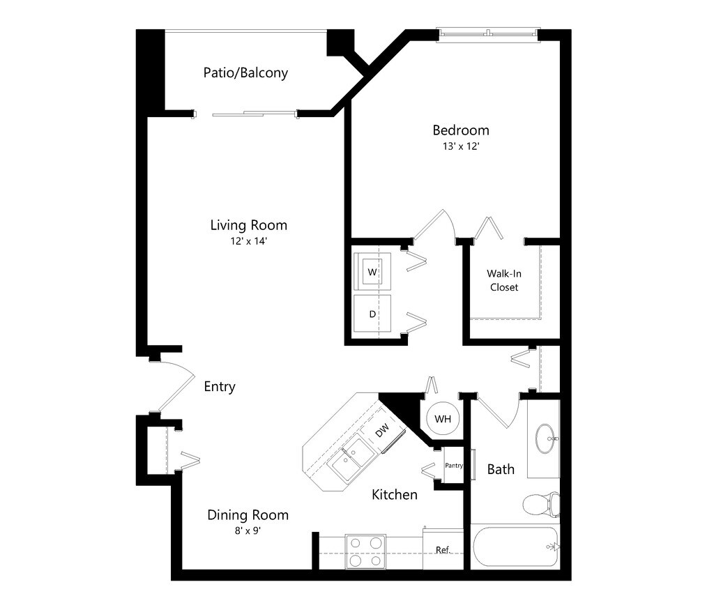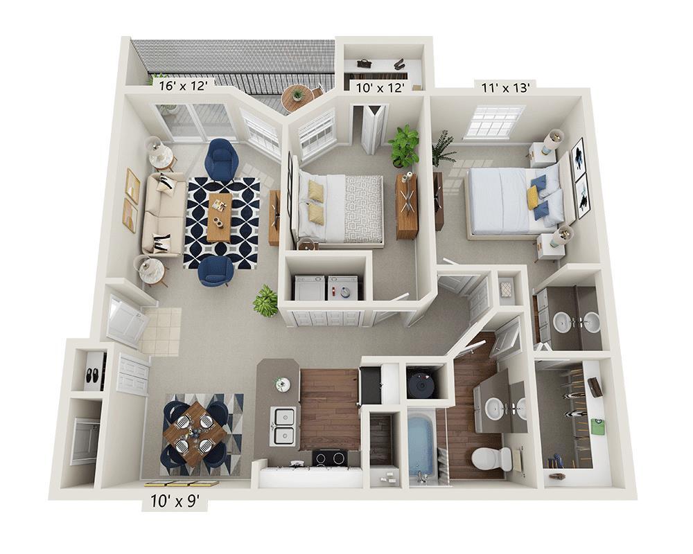 Apartment Model: One Bedroom A1From $1,3831 Bedroom, 1 Bath, 842 sq ftAvailable Now![]()